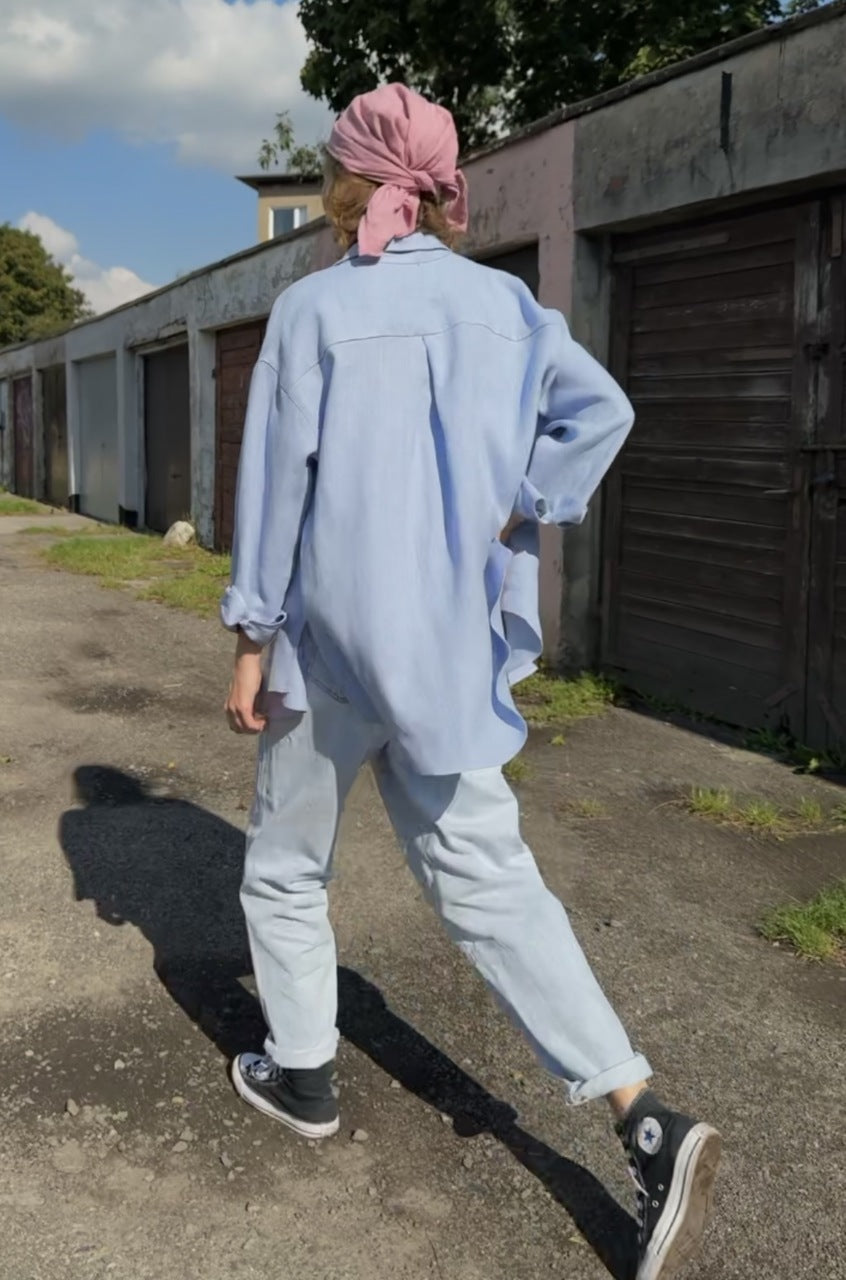 Lniana koszula damska typu oversize uszyta z myślą o kobietach kochających klasykę.